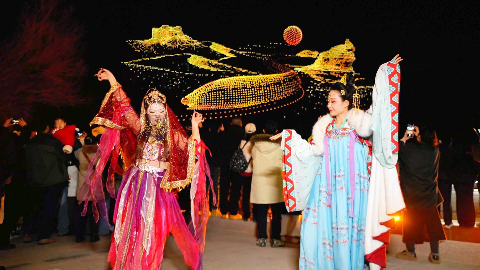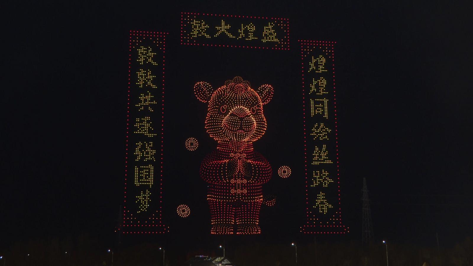 市民王祎祺说:“今天和朋友一起来到这里看无人机灯秀,非常有年味,也非常好玩,灯秀也非常好看,周围人也特别多,年味也是十分浓郁。”