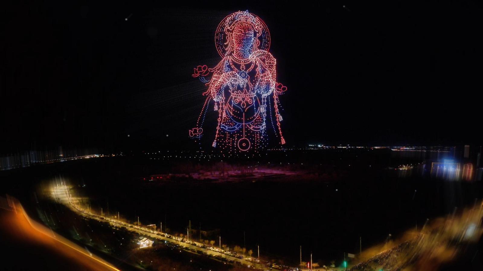 据了解,此次万机秀以“科技与文明交辉,敦煌与世界对话”为主题,由千机科技倾力打造,以万架无人机编队规模,形成新春文旅特色亮点。活动将文化传承、科技创新、节日氛围营造与文旅宣传推广有机结合,通过年轻化、国际化的呈现方式,充分展现了敦煌作为世界文化遗产的独特价值,让传统文化在新时代焕发新活力,为敦煌文旅产业高质量发展注入新动能。