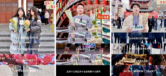 来自兰州的游客评价:“第一次来陇南,天气真的特别暖和,还有沿路盛开的梅花、油菜花,景色非常美。冬天很适合来陇南旅游。”四川广元的游客说道:“早就在抖音上关注到文县白马人的池歌昼,这次专程和家人自驾过来亲身体验。恰好碰到文县举办的庙会活动,看了精彩的表演,还品尝了当地的美食,感受到了工作人员和当地群众的热情好客。听说文县正月十三到正月十五会举办火把节,到时候还会和家人一起来参加,也欢迎大家来陇南体验特色的民俗文化。”长期在北京生活的陇南小伙感慨:“今年春节回来觉得家乡变化特别大,尤其是我们当地的文旅产业发展,比如‘陇上江南’氛围十分浓厚的万象街,还有许多丰富的文旅活动,年味儿十足。看到家乡越来越好我很开心也很激动,有机会一定邀请朋友们来我的家乡旅游,也希望在外的游子能常回家看看!”