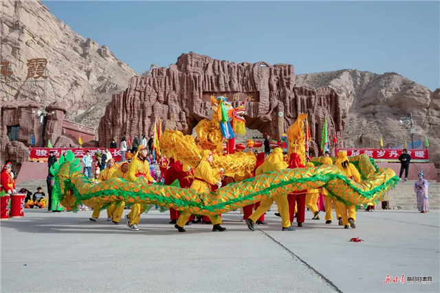 以非遗展演和社火巡游为重要载体,张掖市将传统民俗文化送到街头巷尾,成为新春最浓郁的“年味符号”。张掖市社火调演热闹开演,《龙腾盛世》《雄狮狂舞》等经典节目轮番登场,气势恢宏、喜庆祥和。甘州区玉水苑内《绣楼招亲》《猪八戒背媳妇》等趣味表演诙谐灵动,让市民游客在欢声笑语中感受非物质文化遗产的独特魅力。冰沟丹霞景区创新打造“非遗民俗+自然奇观”特色场景,震天锣鼓与赭红色岩壁交相辉映,舞龙舞狮队伍在峡谷间精彩展演,同步开展的投壶、巡游等新春互动活动,让游客在欣赏丹霞奇观的同时,沉浸式体验传统年味。