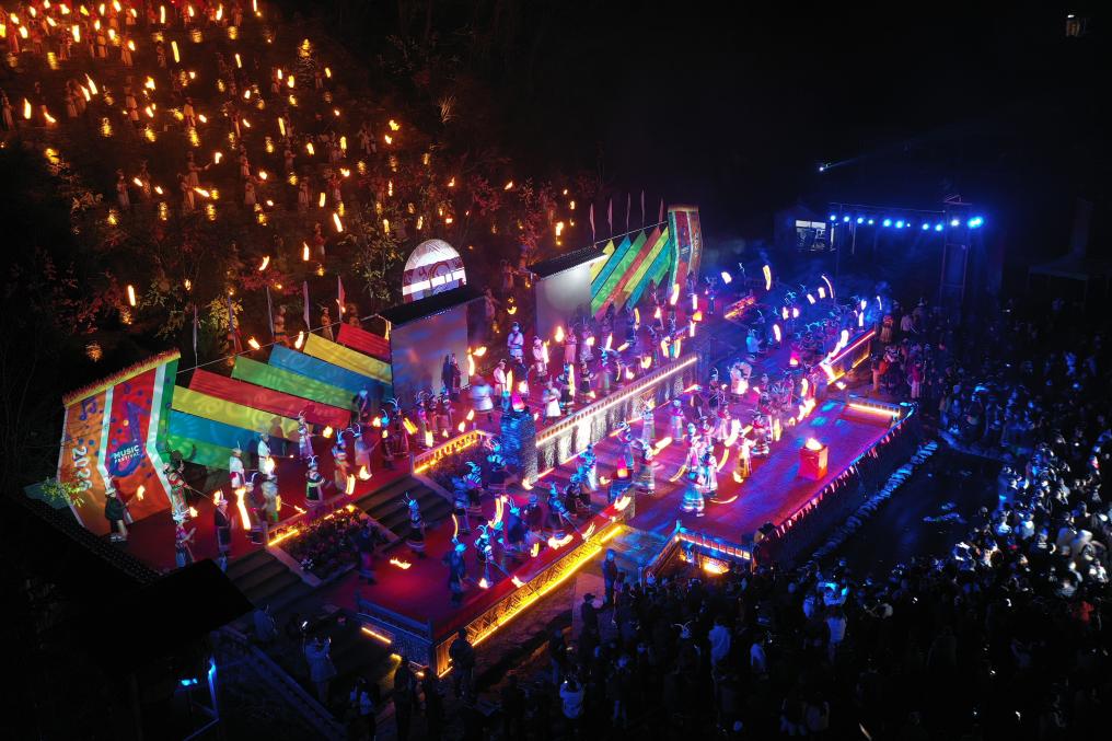 “到了元宵节这天,欢庆的氛围达到顶峰。”铁楼乡副乡长班志茹介绍,元宵节当晚,当地村民们点燃火把高声歌唱、尽情舞蹈,表达美好的新年祝福。