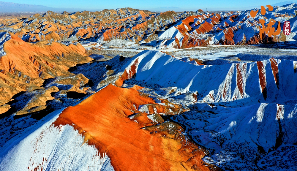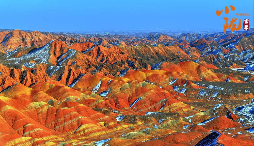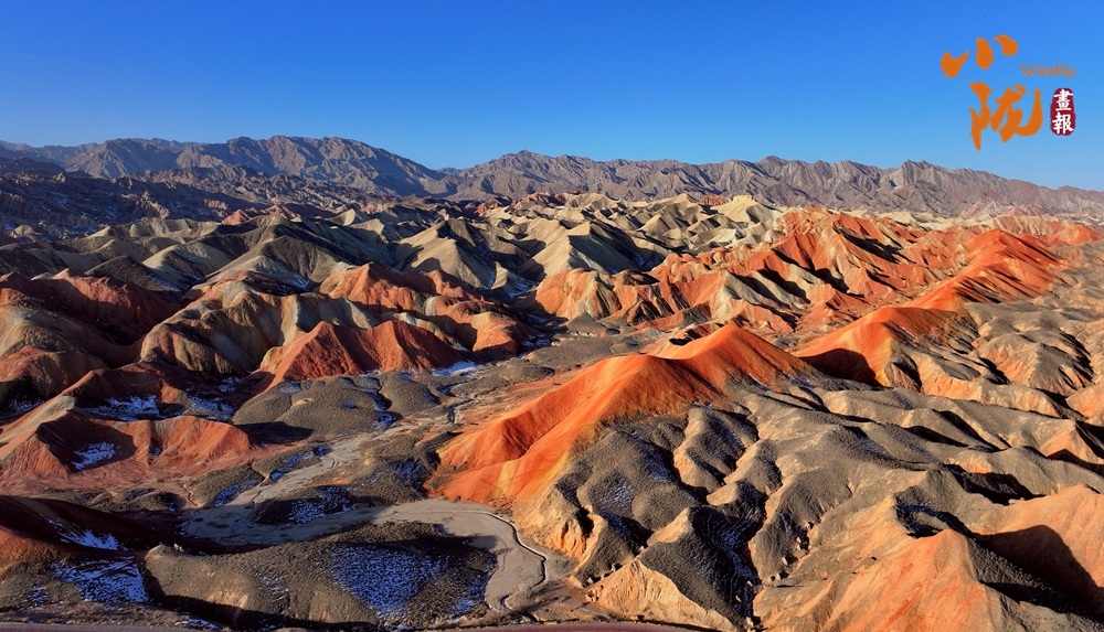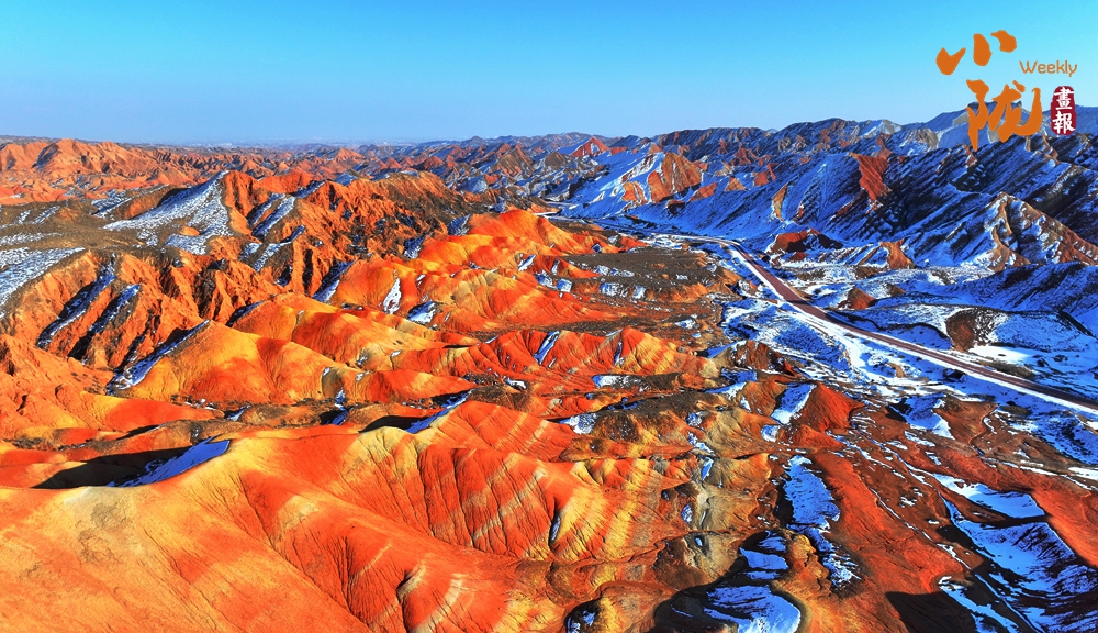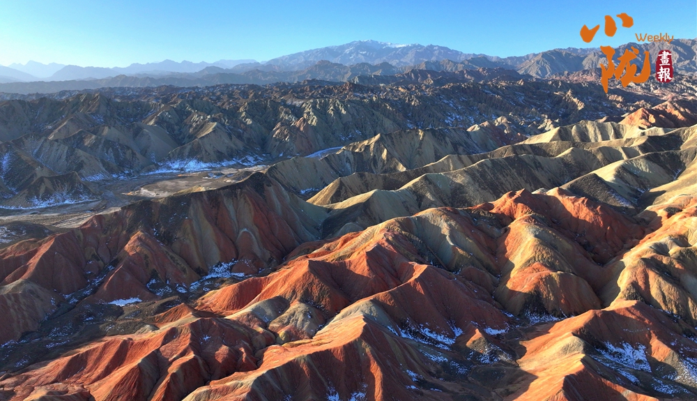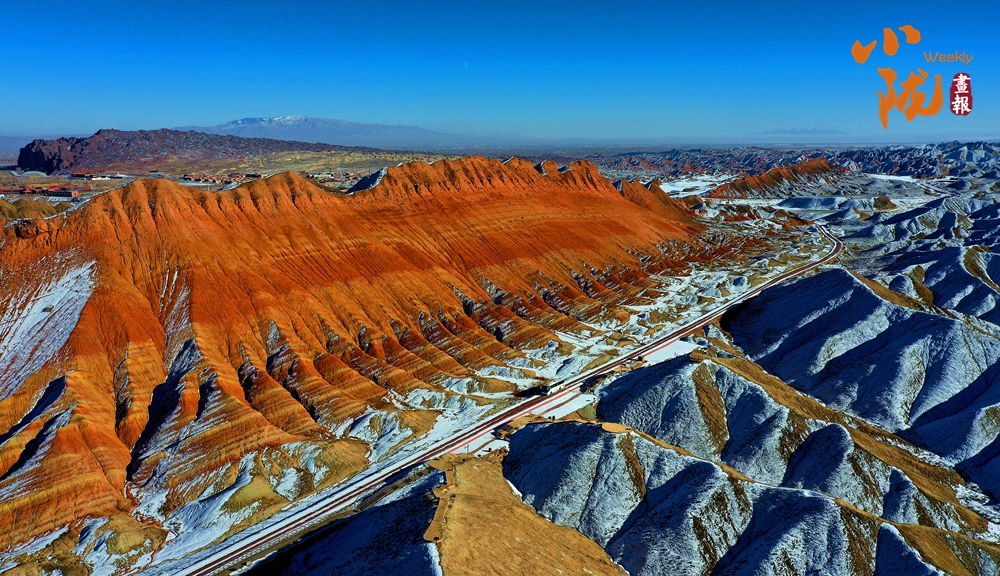 一场春雪后,临泽七彩丹霞褪去了往日的张扬,化身为一幅“半是火焰、半是海”的水墨丹青长卷。