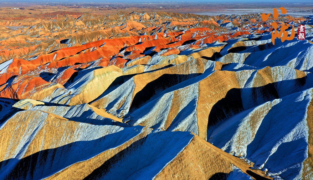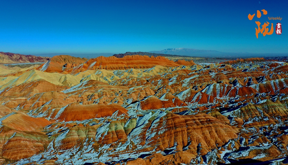一场春雪后,临泽七彩丹霞褪去了往日的张扬,化身为一幅“半是火焰、半是海”的水墨丹青长卷。