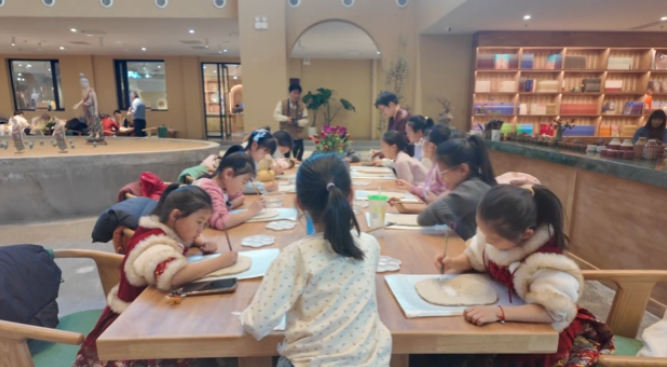 庞大的从业队伍筑牢了产业根基,但要在激烈的文旅市场中脱颖而出,核心依靠过硬的创意与技能。在敦煌无界文创空间,孩子们正围坐一堂,在老师指导下绘制泥板画,将敦煌元素融入指尖作品。为了让学员跳出单纯“模仿”、深耕自主“创作”,当地培训机构探索出一套特色教学体系,重点培养学员将抽象文化符号转化为实用文创产品的能力。