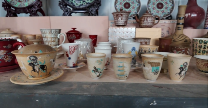 敦煌文创产品策划运营师王彦军说:“敦煌作为一个旅游城市,对文创产品这一块,我发现需求量还是相当大的。所以我就结合了我的所学、我的专业,把敦煌元素转换成文创产品,嫁接于陶瓷之上,研发了一系列敦煌元素的陶瓷产品。比如有咖啡杯、茶具以及日常用瓷、艺术用瓷等。”
