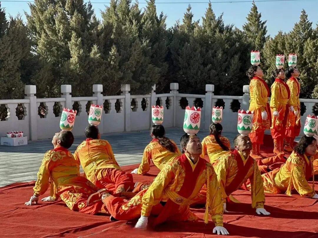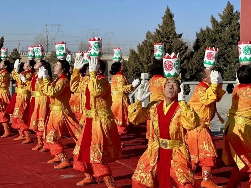 这门古老的艺术,能在岁月长河中熠熠生辉,离不开一代代传承人的坚守。从元代流传至今,滚灯舞历经十二代艺人的口传心授,核心技艺从未走样。老一辈艺人坚守着“传艺先传德”的准则,手把手教后辈拿捏顶碗的力道、踩准舞步的节奏;年轻一代则带着创新的思维,为滚灯舞注入新活力。他们将现代舞蹈元素融入传统招式,让表演更具观赏性;用短视频记录排练与演出的瞬间,让这门藏在西北小城的非遗艺术被更多人看见。如今,在凉州区永昌镇的校园里也开设了滚灯舞兴趣班,孩子们顶着小瓷碗练习基本功,稚嫩的脸庞上满是认真,烛火的微光映照着非遗传承的希望。