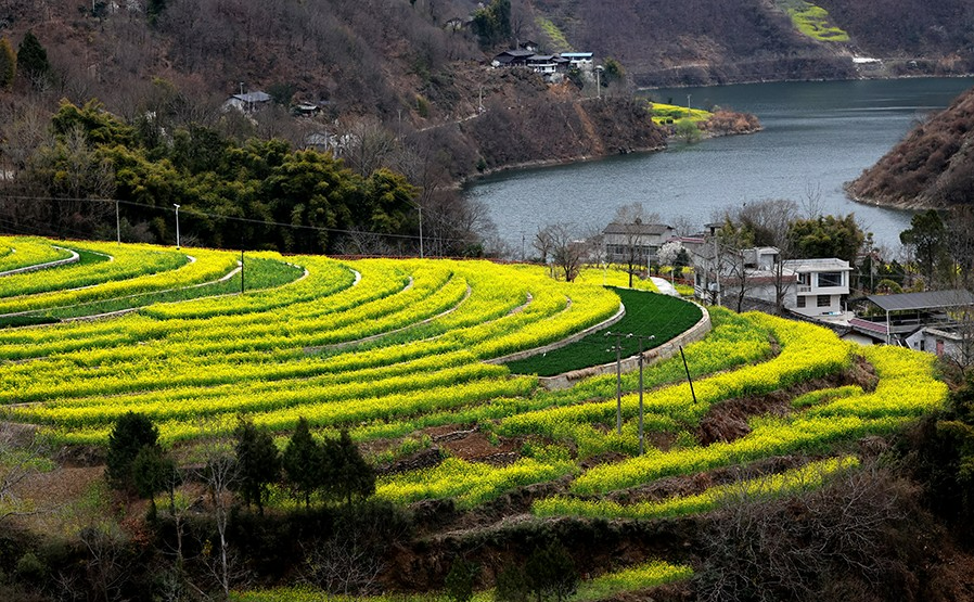 春回大地时节,甘肃文县白龙江、白水江沿岸万亩油菜花竞相绽放。金灿灿的花海与碧水青山相映成趣,白墙黛瓦的村落点缀其间,构成一幅生机勃勃的乡村春景图。文县依托得天独厚的自然资源和深厚的文化底蕴,本季推出玉垒春晓·花海寻踪之旅、白马风情·古寨秘境之旅、碧口古镇·茶韵温泉康养之旅三条精品路线,推动农文旅融合发展。近年来,当地在花田周边建设了露营地、农家乐等配套设施,游客可乘船赏花或沿栈道漫步,体验田园风光。文县油菜花观光、白马民俗、采茶体验等乡村旅游已成为当地文旅消费新亮点。(甘肃日报记者 高樯 丁凯)