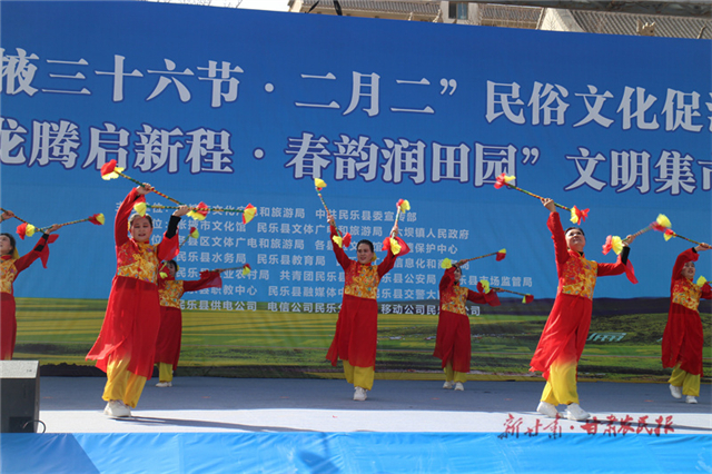 3月20日,农历二月二“龙抬头”,张掖市民乐县六坝镇劳动主题广场锣鼓喧天、人头攒动,处处洋溢着喜庆热闹的节日氛围。2026年“张掖三十六节·二月二”民俗文化促消费活动暨“龙腾启新程·春韵润田园”文明集市正式启动。