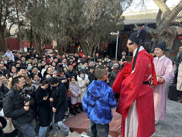 书香传家,登科荣耀。文庙景区状元巡游璀璨登场,身着古装的状元、榜眼、探花及仪仗队伍浩浩荡荡,还原古代金榜题名盛景。不仅有精彩的古装演绎,更设有互动环节,邀你体验穿越千年的科举文化。