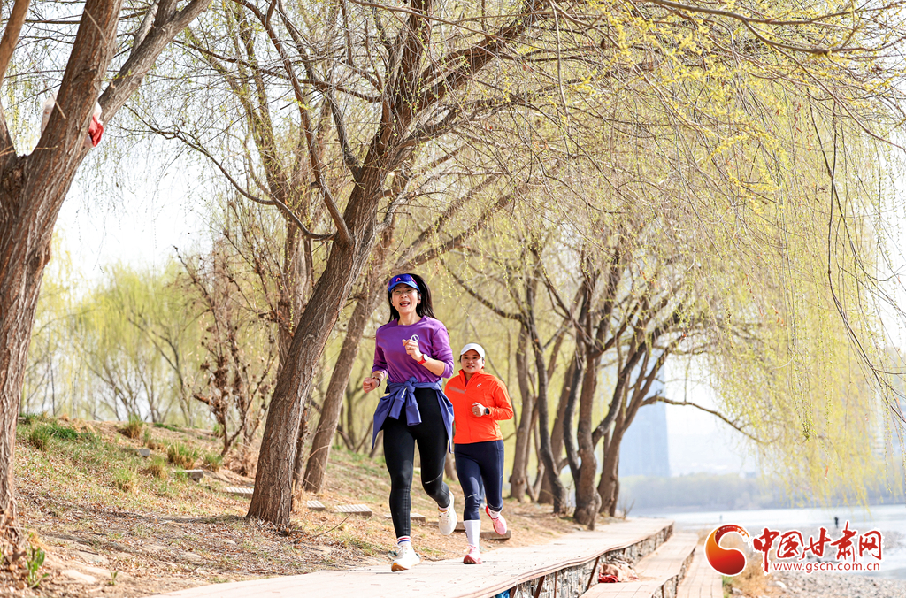 3月24日,市民在兰州市城关区马拉松公园跑步健身。