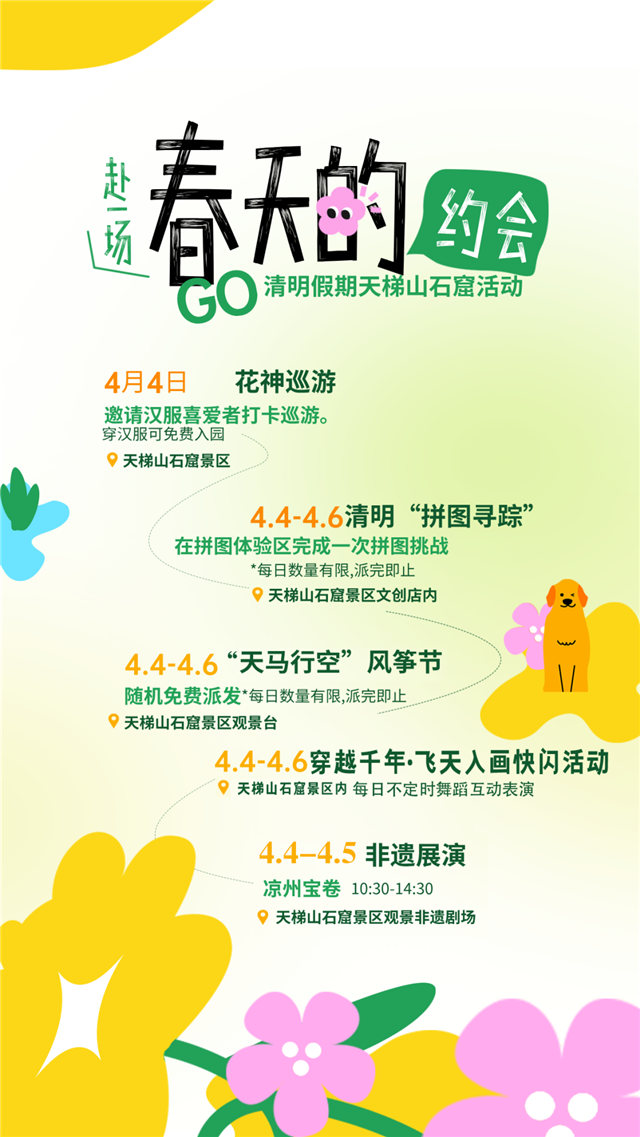 春风拂过大地,清明假期的脚步悄然临近。为让广大市民和游客沉浸式感受武威的文化底蕴与春日盛景,全市各区县、各单位精心策划了一系列丰富多彩的文旅活动,涵盖社教体验、互动打卡、非遗展演、红色研学等多元类型,共计30多项活动,承包你整个假期的快乐!