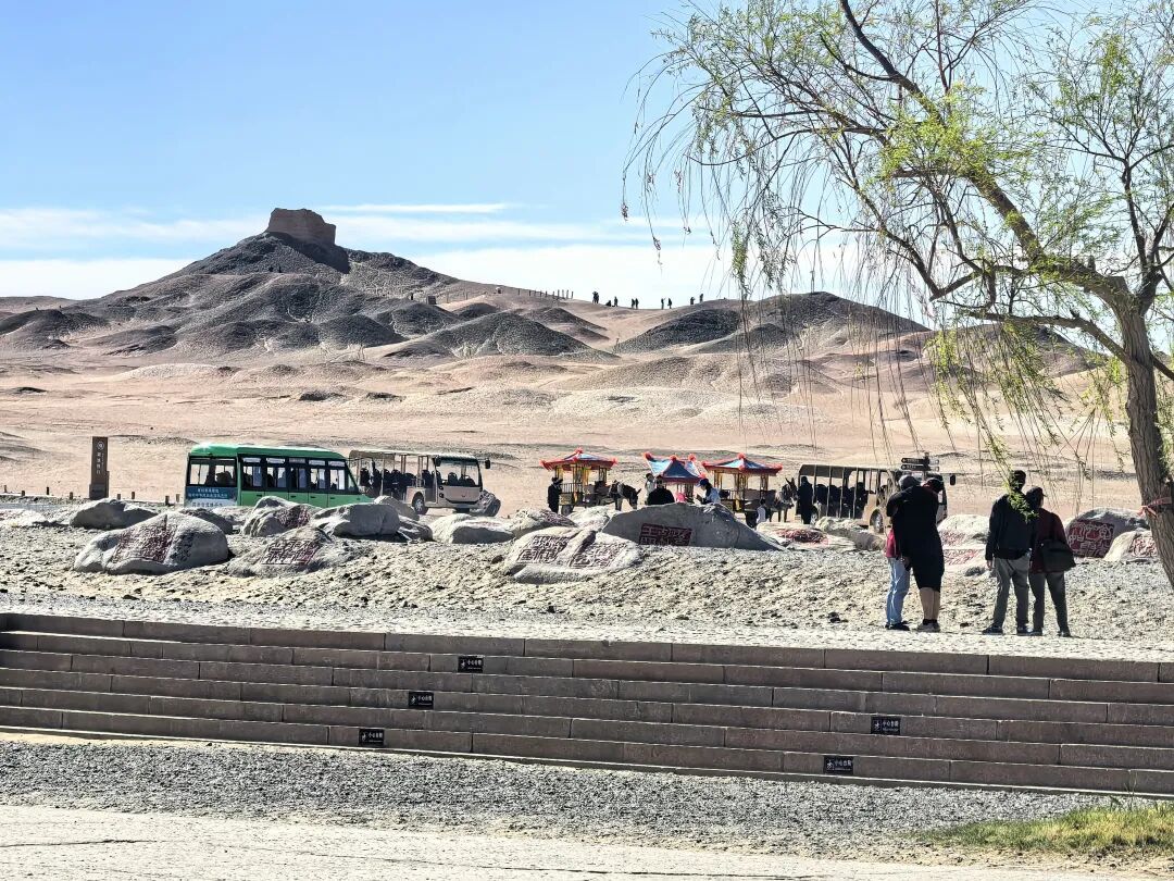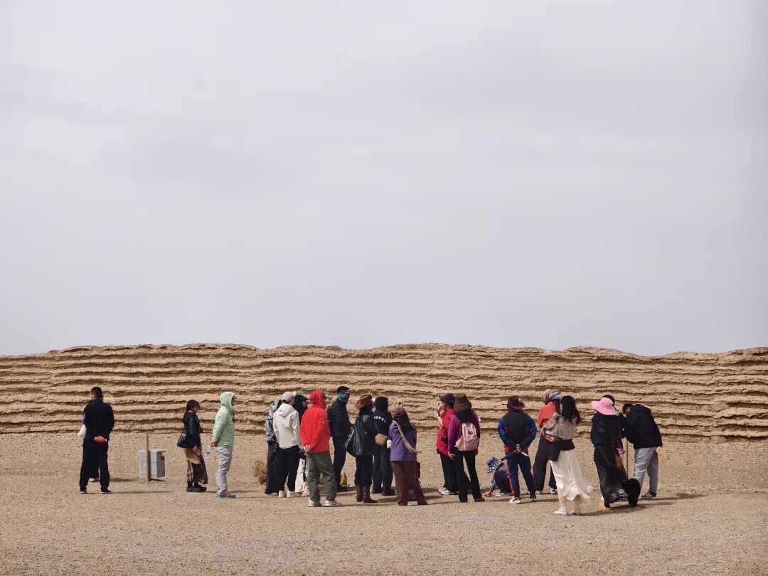 游人穿梭在旅游区各处,或漫步古驿道,感受丝路千年回响;或参与互动体验,收获别样乐趣;或驻足欣赏戈壁春景,沉醉在自然与历史交织的美好意境中,欢声笑语间,尽显清明踏春的惬意与温情。
