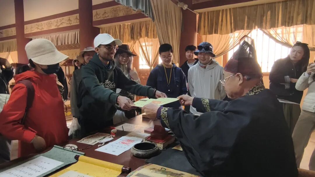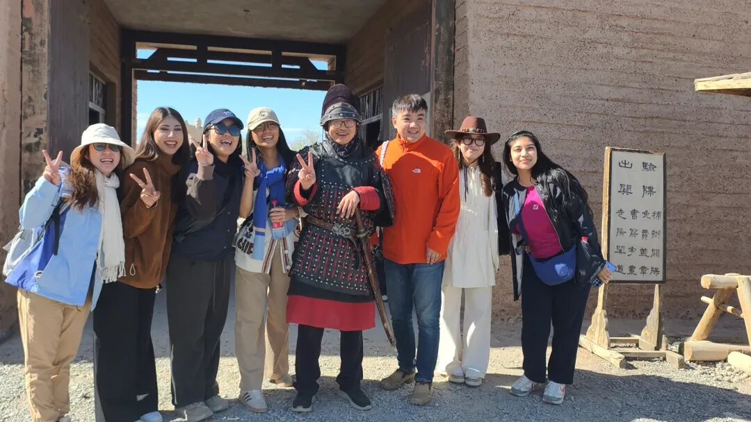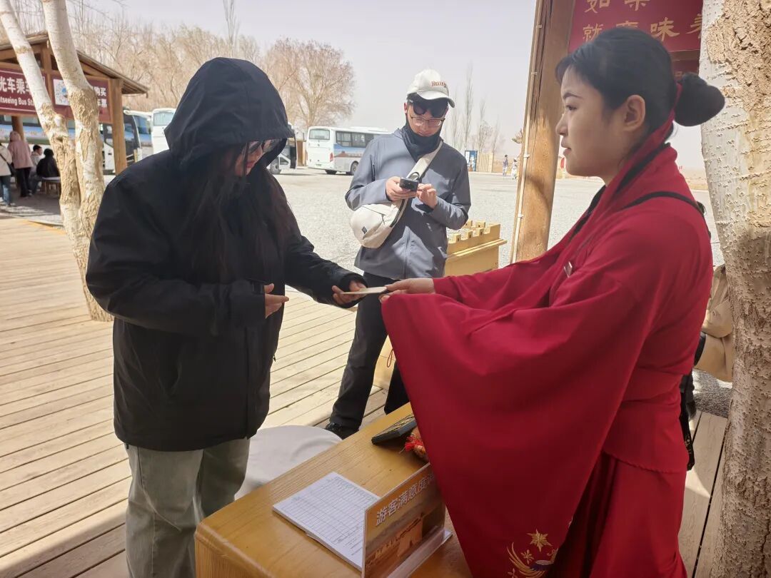 除了赏景踏青,旅游区精心推出的通关文牒、诗词挑战赛等特色活动也深受游客喜爱。国外游客手持文牒,体验汉唐通关仪式,在趣味互动中触摸历史文脉;诗词擂台前,大人小孩踊跃参与,吟诵边塞名篇,氛围感拉满。
