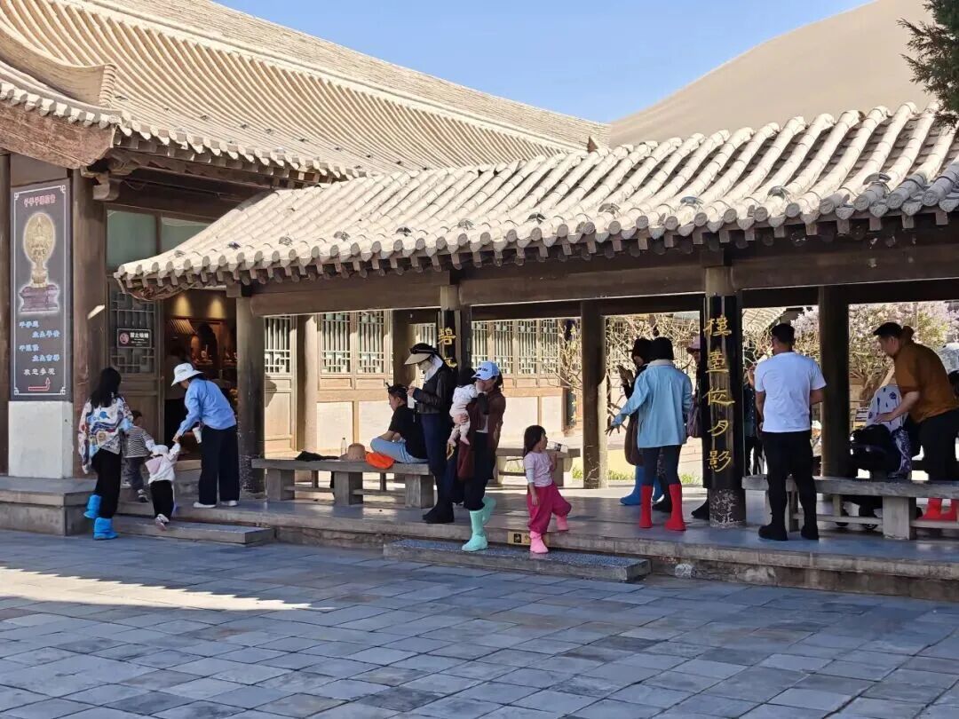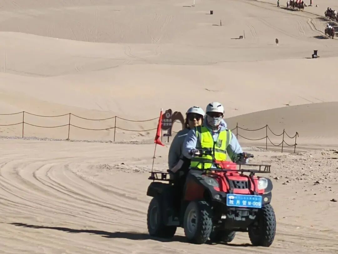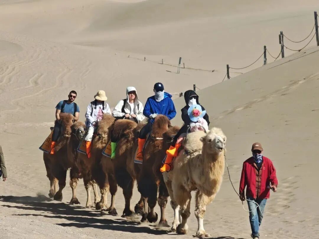 大漠乘驼、滑沙、越野车等特色体验项目,深受游客喜爱。漫步景区,随处可见家庭出游的温馨身影、好友同游的欢声笑语、青年独行的潇洒自在。大家尽情体验着大漠的独特魅力,在欢声笑语中尽享清明假期的惬意与美好。来自四川的游客刚结束骆驼骑行,脸上满是欢喜与感慨:“这是我第一次来鸣沙山月牙泉,刚骑完骆驼,全程都很舒心,景区的服务特别棒,工作人员热情又周到,让我在陌生的地方感受到了满满的温暖。”游客的肯定,也让坚守岗位的工作人员倍感欣慰。