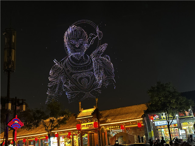 类似的“入戏”感,在山西大同的夜空中以另一种方式呈现。2025年国庆期间,8000架无人机在古城夜空组合出云冈大佛与热门游戏《黑神话:悟空》的经典形象,配合城墙上的实景演艺,吸引了超15万人次。这场现象级的“光影秀”不仅是一场表演,更是一次成功的情感引爆。“那一刻,古老的文化突然变得可触摸、可共鸣。”一位现场游客感叹。