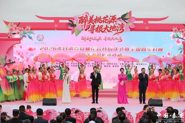 桃红万亩迎春色,村晚一台醉秦安。4月8日,2026年甘肃秦安桃花会开园仪式暨全国“四季村晚”春季示范展示活动在天水市秦安县刘坪镇秦洼桃花堡景区举行。万亩桃园繁花似锦、粉黛盈枝,八方游客踏春而至、共赴盛会,“中国桃之乡”秦安以烂漫春色、千年文脉与群众性文化盛宴,喜迎四海宾朋。