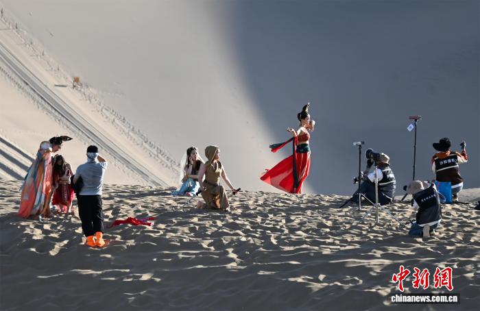 4月以来,气温渐暖,在甘肃敦煌鸣沙山月牙泉景区,一场以大漠飞天、西域风情为核心的旅拍热潮正持续升温,从日出到日落,沙丘之上、泉边湖畔,随处可见身着精美古风服饰的游客,在摄影师镜头下定格专属大漠的浪漫瞬间,旅拍已然成为鸣沙山脚下最亮眼的文旅新风景。周玉玲 摄