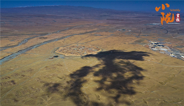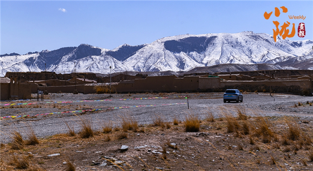 荒草漫过碎石地,土坯院落静卧在旷野,远处雪峰覆着皑皑白雪,澄澈蓝天作底。一辆车停在空地上,为苍茫的高原村落添了灵动的烟火气。