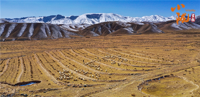 褐黄的草甸上,羊群如散落的星子,在天地间缓缓游走,远处雪峰巍峨,为这片苍茫的土地晕染出静谧悠远的底色,每一缕风里都裹着高原的质朴与辽阔。
