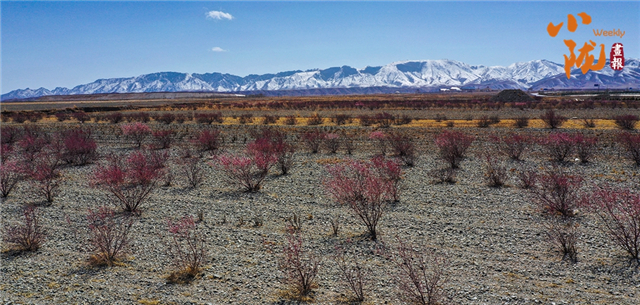 荒漠红花灌木如星火般点缀在砾石间,玫红的花色在苍茫大地里晕开鲜活的色彩。远处雪峰静立,澄澈蓝天为幕,这抹热烈的红,是荒芜里迸发的生机,是景泰大地独有的春日诗行。