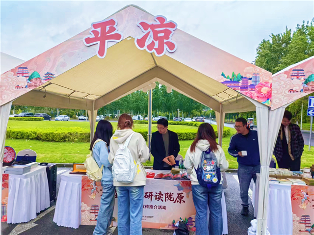 4月19日,“赏洛阳牡丹·游如意甘肃”甘肃文旅主题推介活动在洛阳市明堂天堂景区举行。恰逢洛阳牡丹花会盛花期,游客如织,平凉代表团抢抓机遇,精心布设非遗文创展位,主动向过往游客介绍平凉文旅资源和崆峒山景区优惠政策。不少游客被崆峒山的“天然氧吧”和道源文化吸引,纷纷扫码关注、索取宣传资料。
