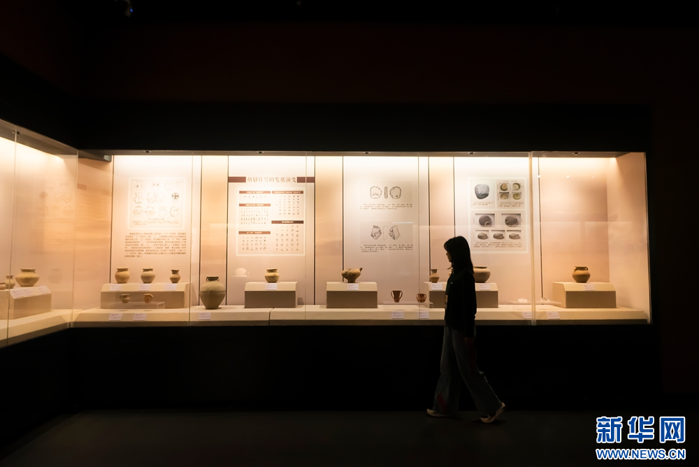 一位游客从陶罐前走过。新华网发(钟世文 摄)